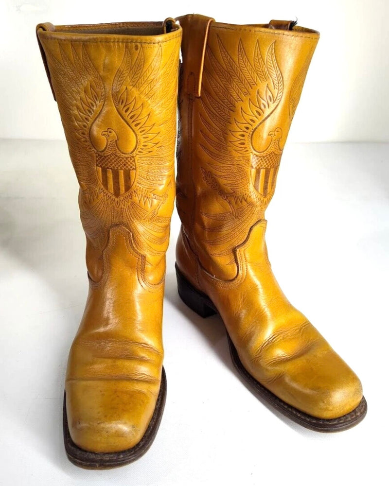 Vintage Eagle Crest Square Toe Cowboy Boots