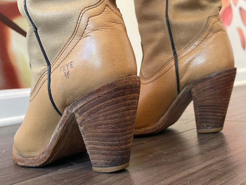 Vintage Frye Natural Stacked Heel Cowboy Boot - 1980's