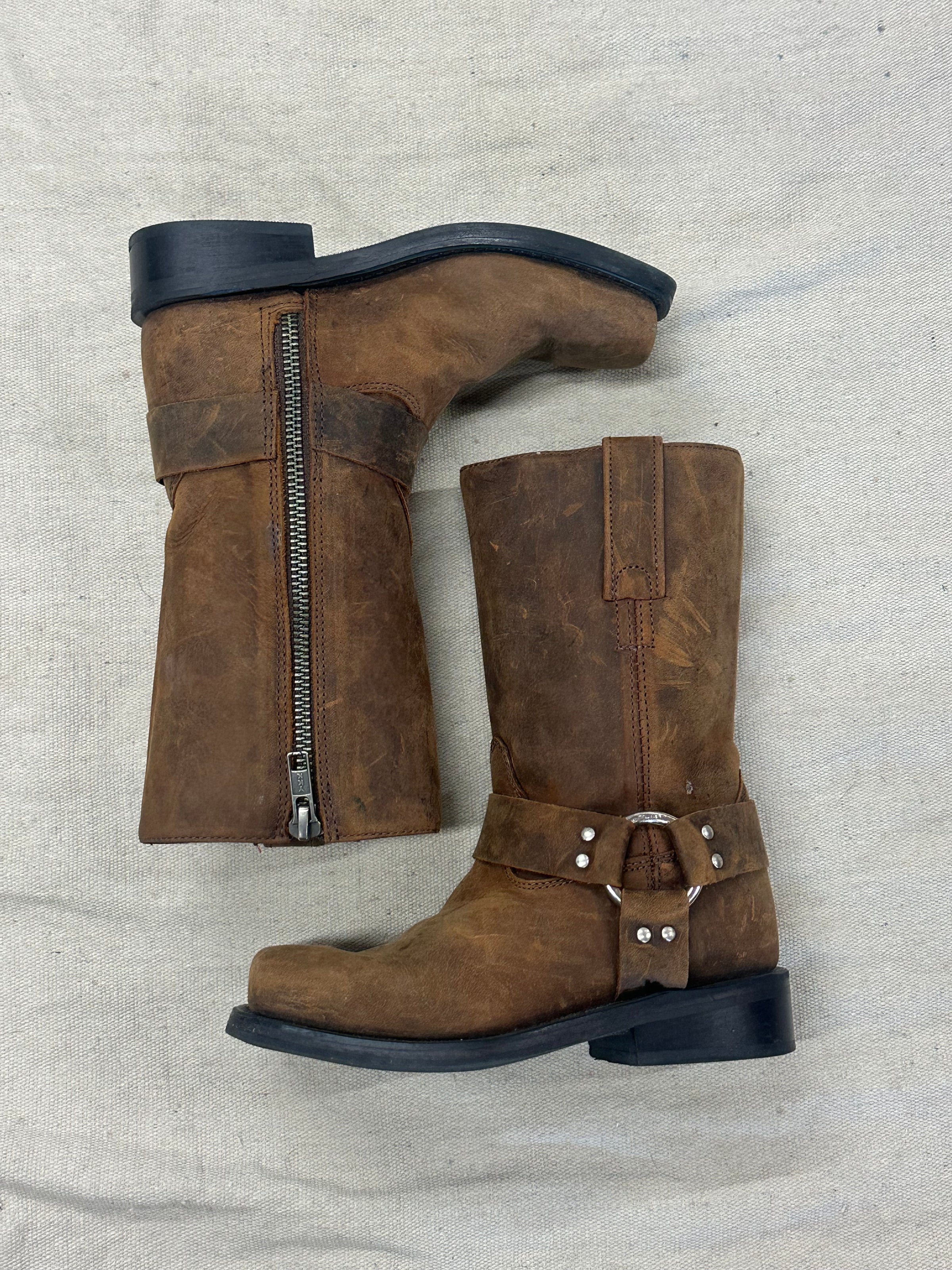 Vintage kids brown moto cowboy boots