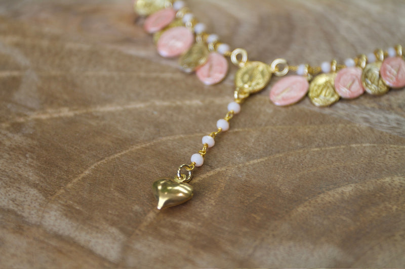 Pink and Gold Drop Charm Necklace