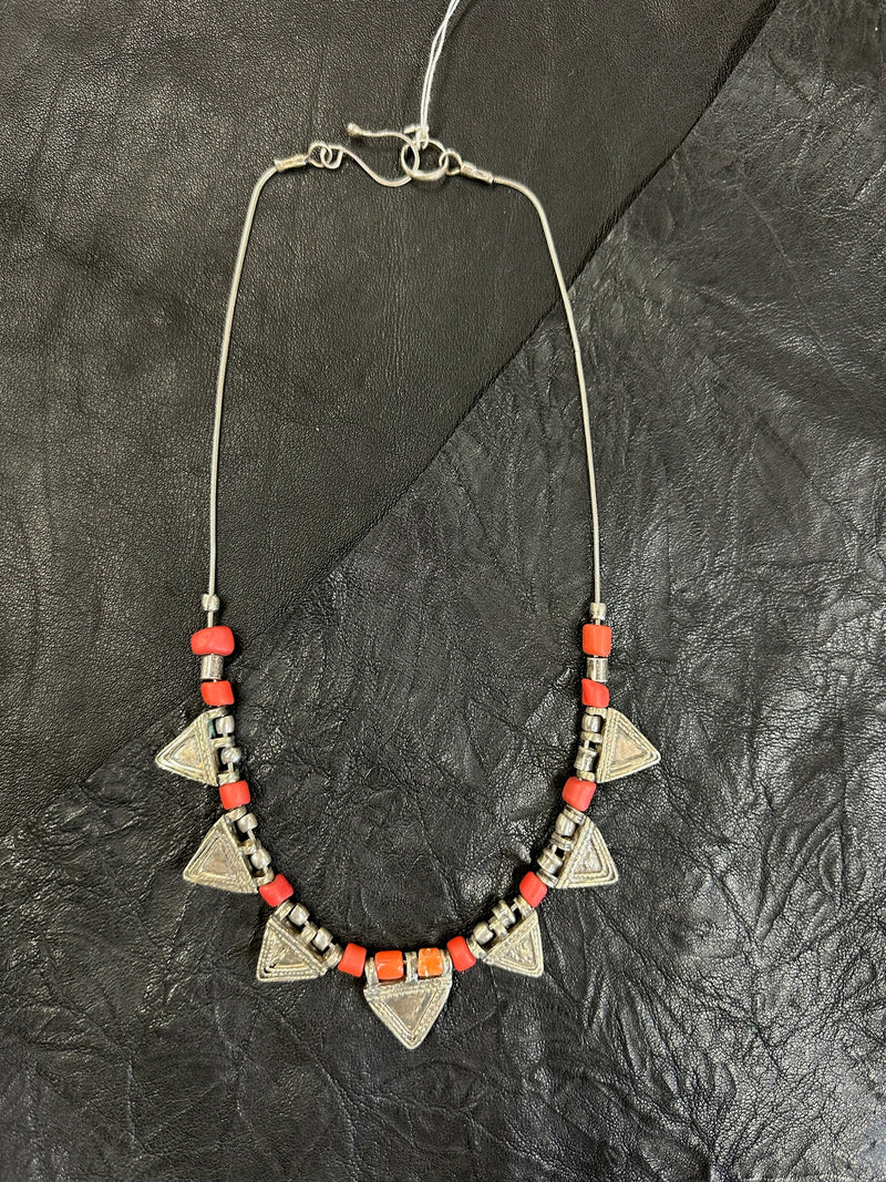 Sterling Triangle and Coral Necklace