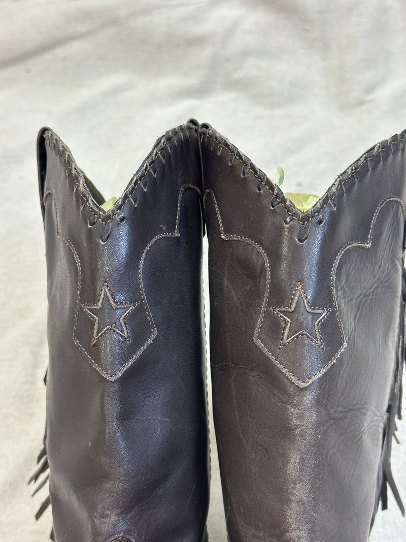 Brown Fringe With Gold Toe Cap Cowboy Boots
