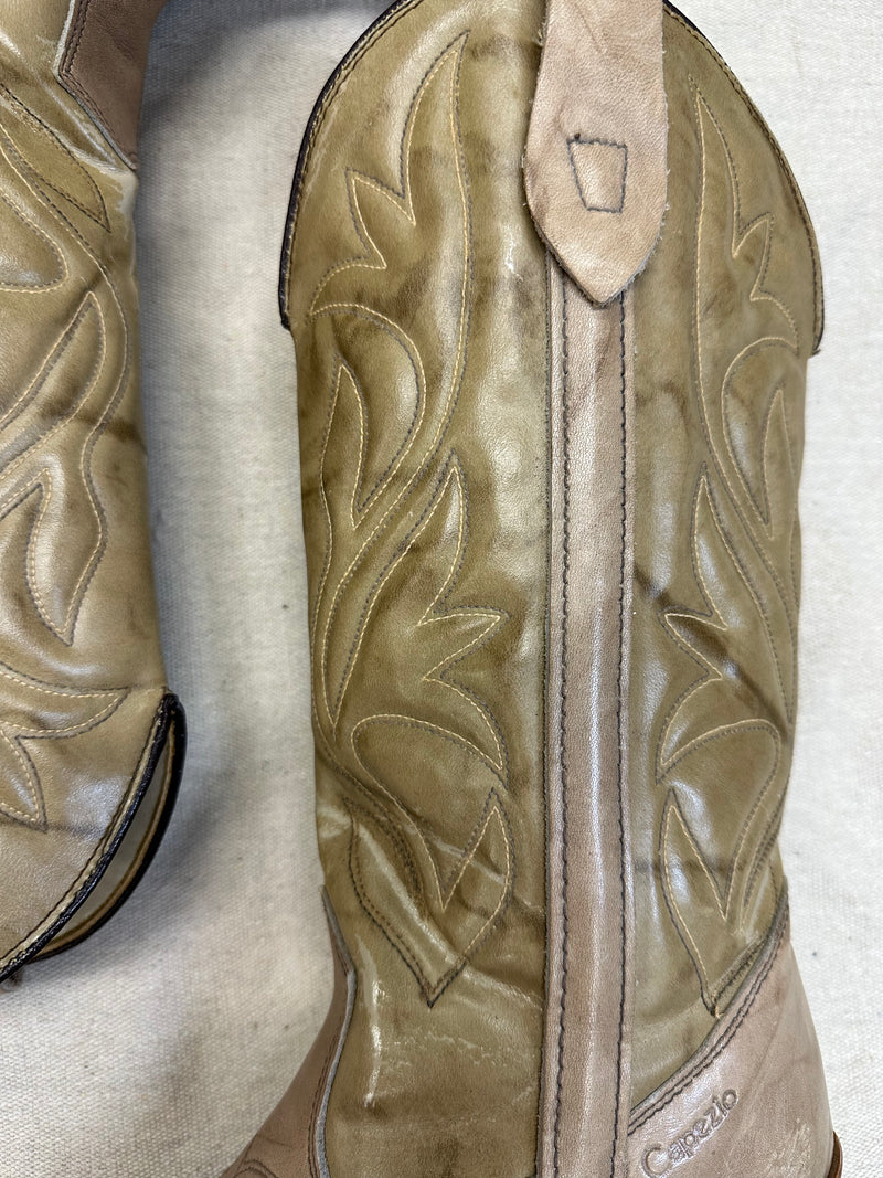 Tan Two Tone Suede Stacked Heel Cowboy Boots