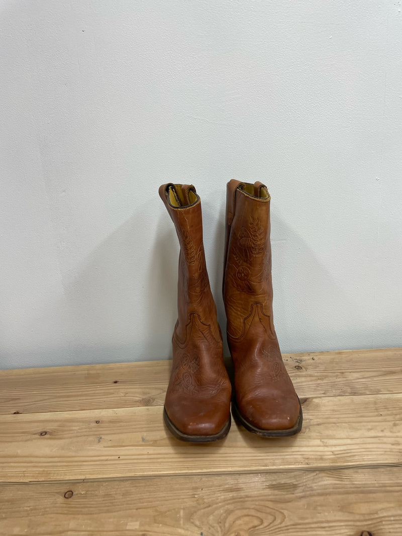 Vintage Tan Leather Round Toe Boots