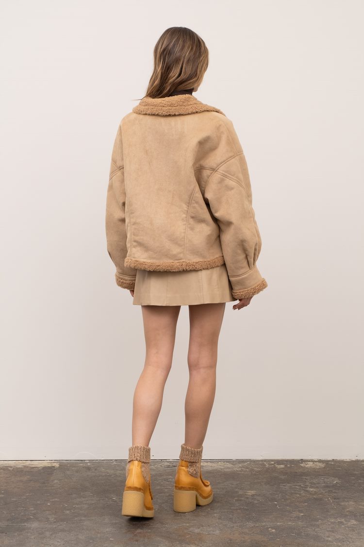 Shearling Button Down Jacket with Pockets