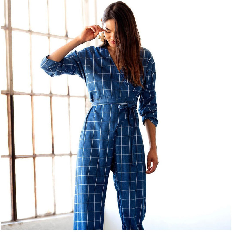 Abby Jumpsuit - French Blue Windowpane Plaid